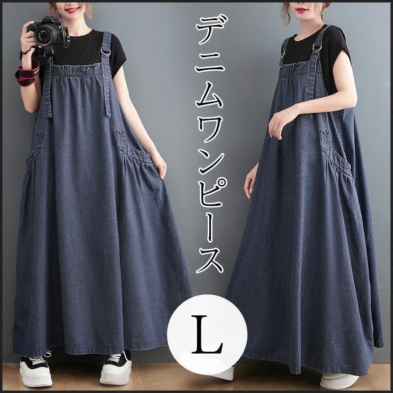 - レディース ワンピース デニム ロング ジャンパースカート Aライン 新品 大きい ゆったり 大人気 可愛い サロペット 大人 L 春 夏 秋 冬