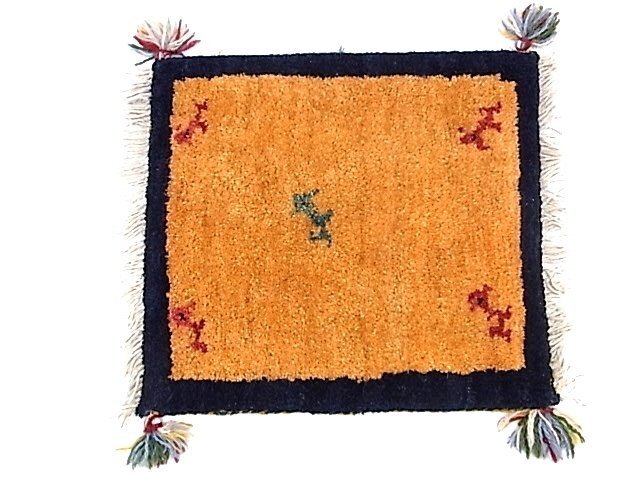 > e13019 ギャッベ ラグ マット 小ぶり オレンジ*濃紺 フリンジ 41.5*39㎝