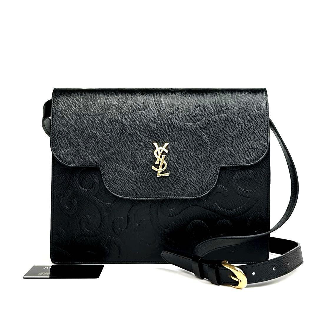 - 【美品】Yves Saint Laurent イヴサンローラン ショルダーバッグ 2way YSL カサンドラ 唐草 総柄 斜め掛け レザー 黒 ブラック フォーマル