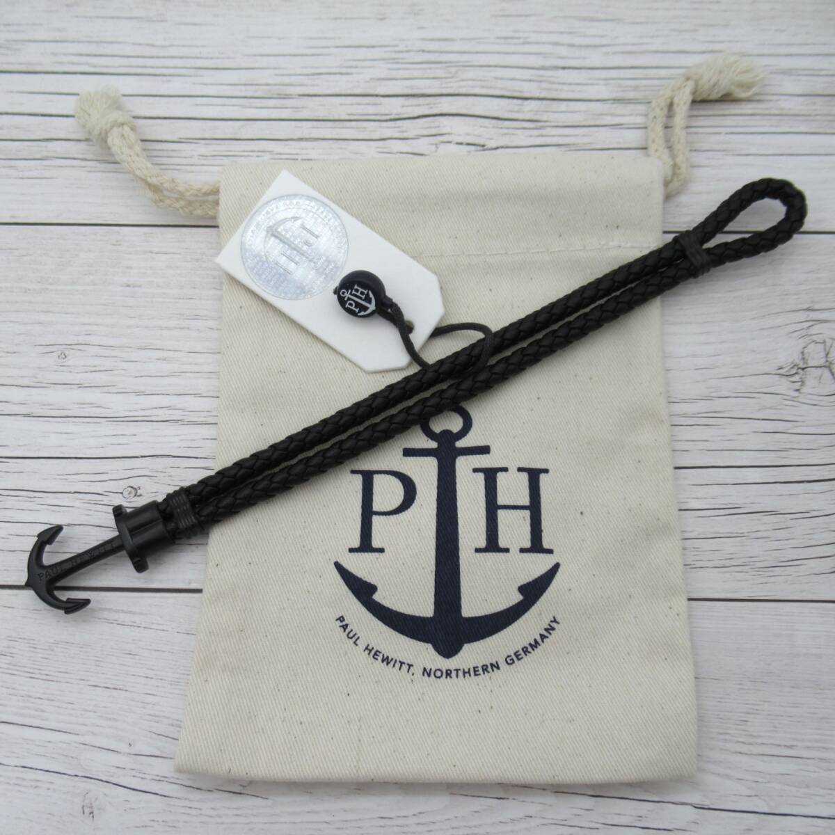 - 【新品未使用】Paul Hewitt ポールヒューイット Mサイズ ブラック アンカー ブレスレット レザー 革 ステンレス 錨 アクセサリー