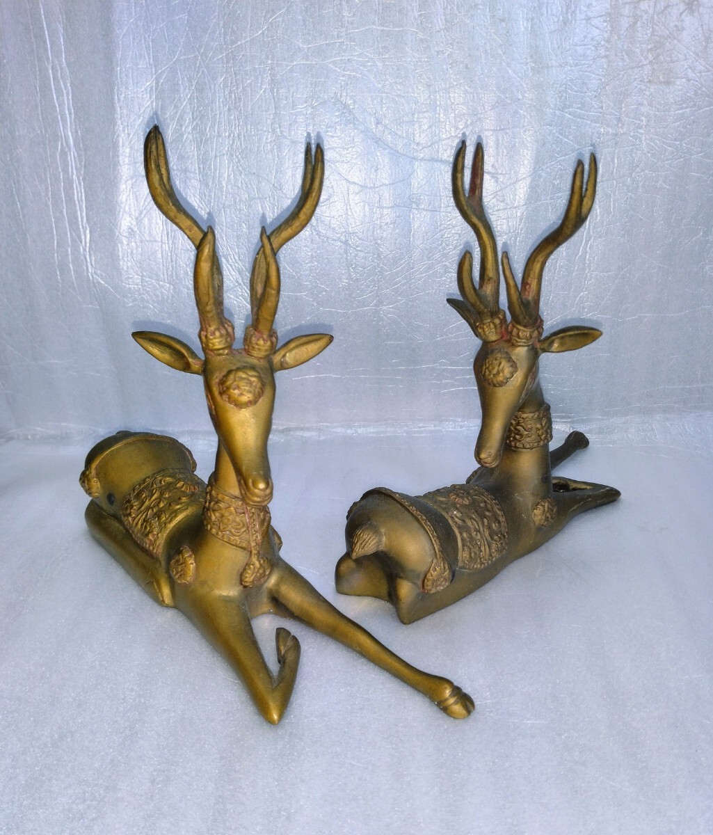 - K246①アンティーク鹿の置物 ヴィンテージ鹿の像 鹿の真鍮彫刻 2体(1対) ペア