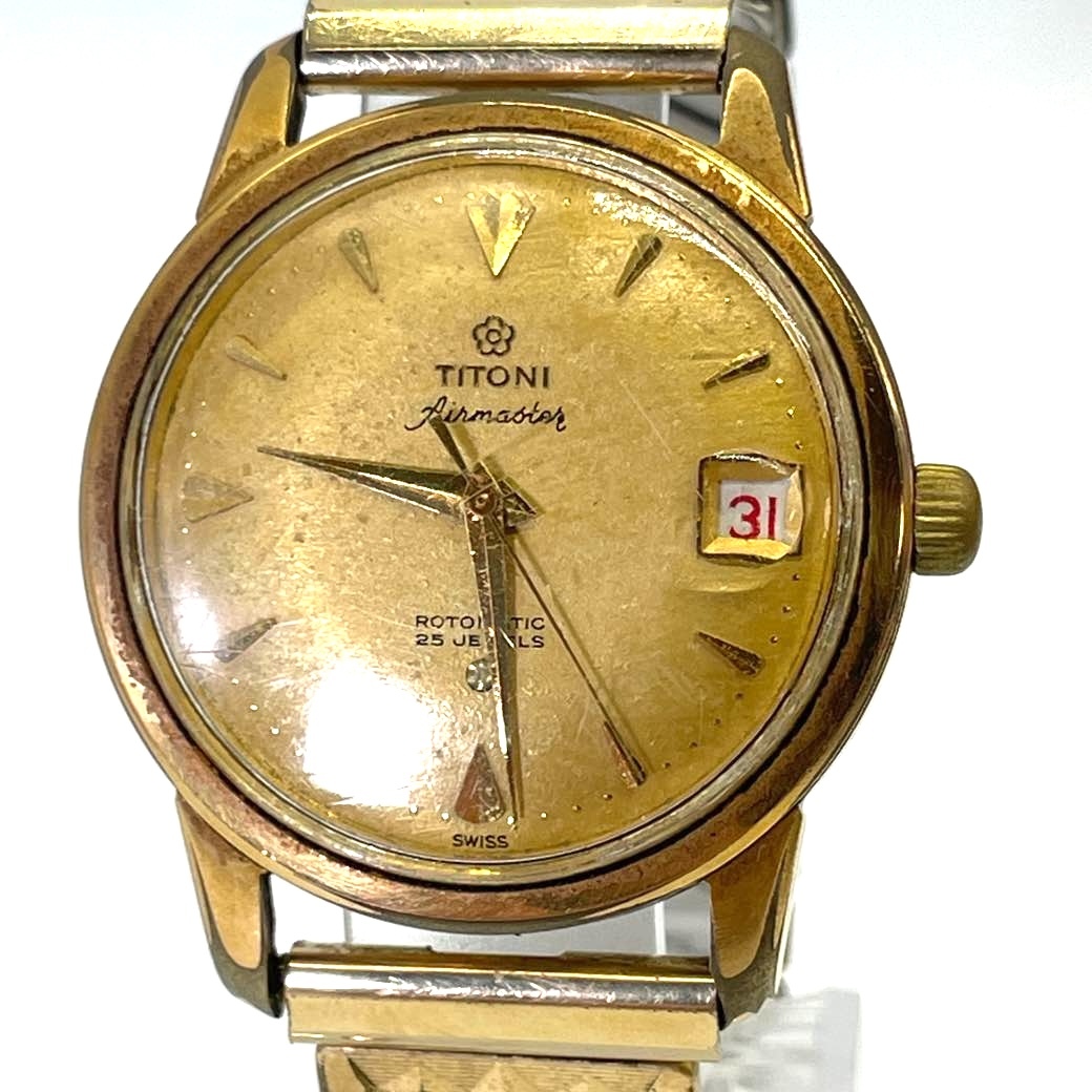 - TITONI チトーニ デイト 207-345 ゴールド文字盤 メンズ 自動巻 25石 ヴィンテージ #A3173