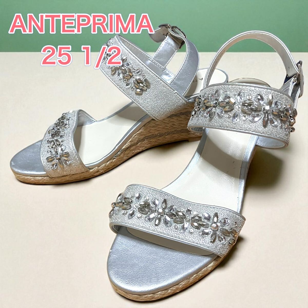 - 美品 ANTEPRIMA サンダル ウェッジソール ビジュー シルバー 合皮 アンクルストラップ ストーン ビジュー