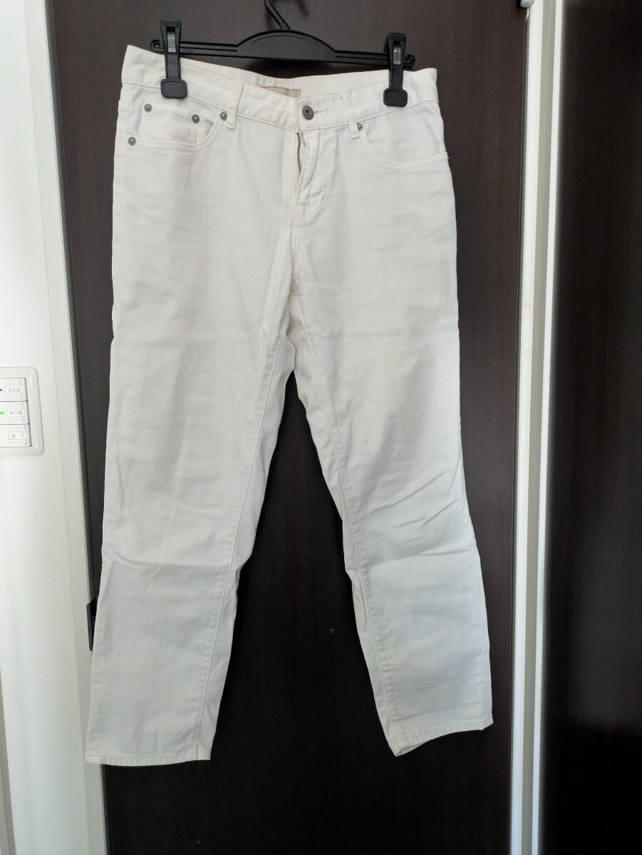 - 即決有★ユニクロ ホワイトデニム パンツ スリムボーイフレンド テーパード 24(61㎝)股下65★送料185円