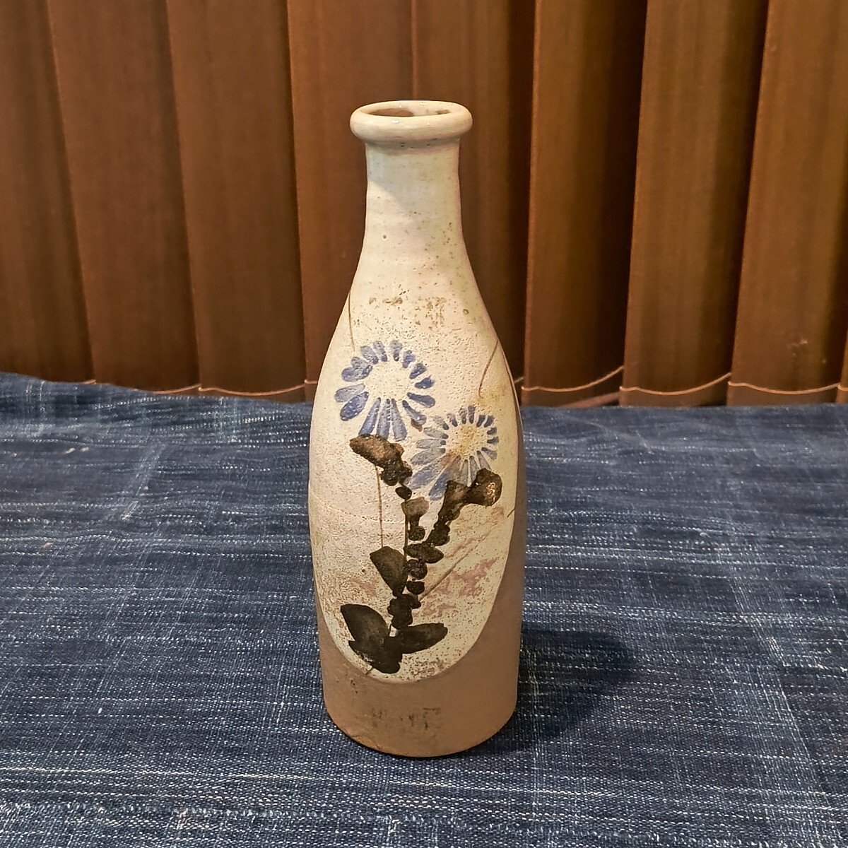 - 山陽民芸 江戸期 虫明焼 幕掛け 徳利 菊と蝶 雨漏り 検) 古民芸 骨董 古道具 民芸 民窯 御用窯 花器 酒器 花生け 花瓶
