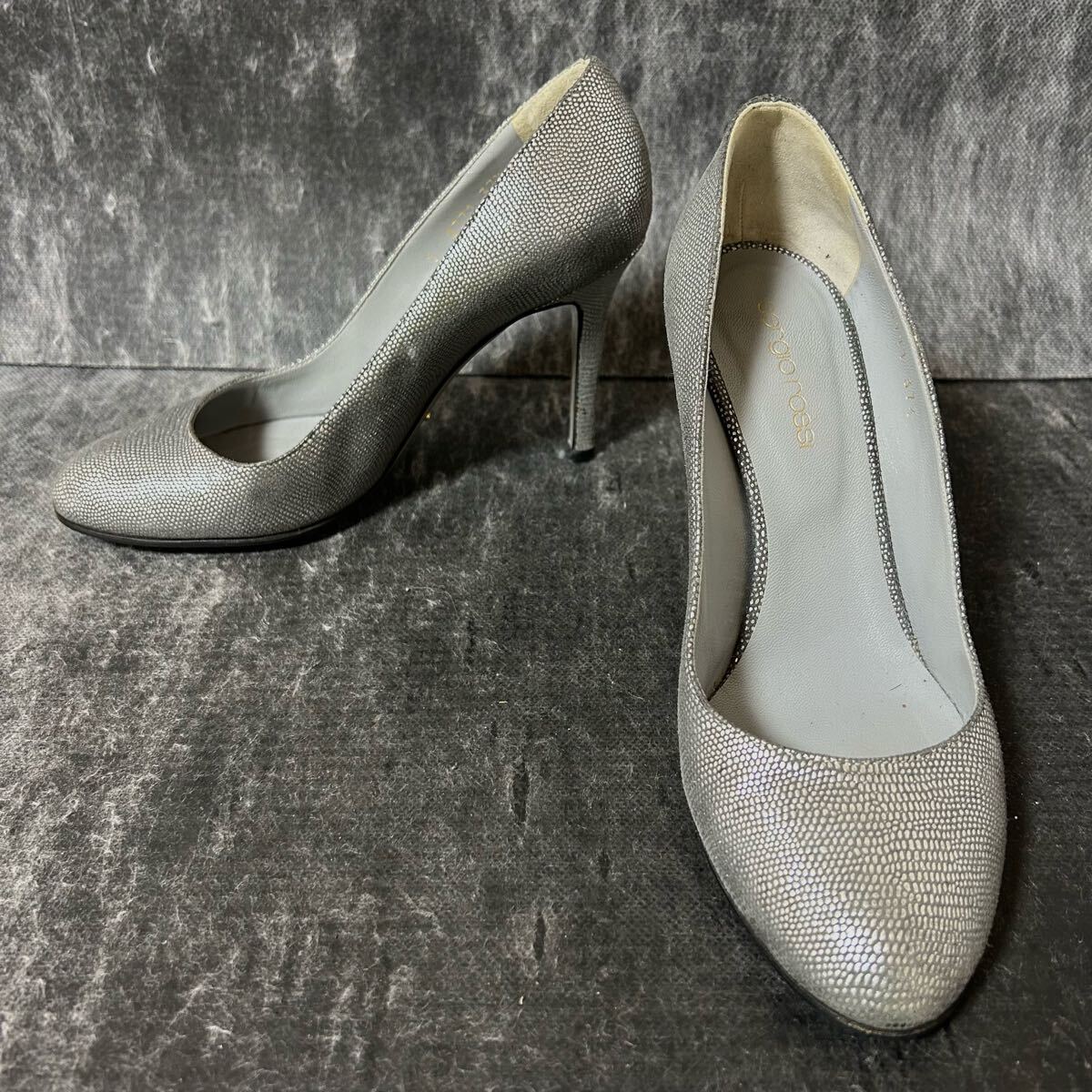 > Sergio Rossi セルジオロッシ ヒールパンプス レザー パンプス ヒール9cm 371/2 23.5cm相当 シルバー *BN