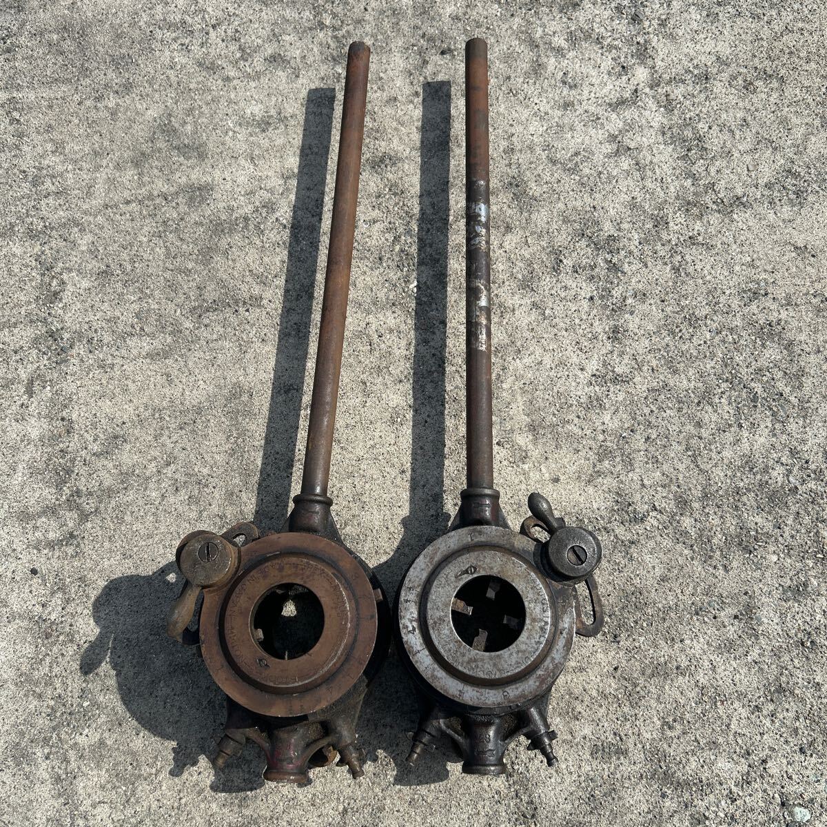 > REX レッキス 手動ねじ切り機2本セット パイプネジ切り 大工道具 DIY 日本製 総重量約20kg 円穴直径7㎝ No.114R