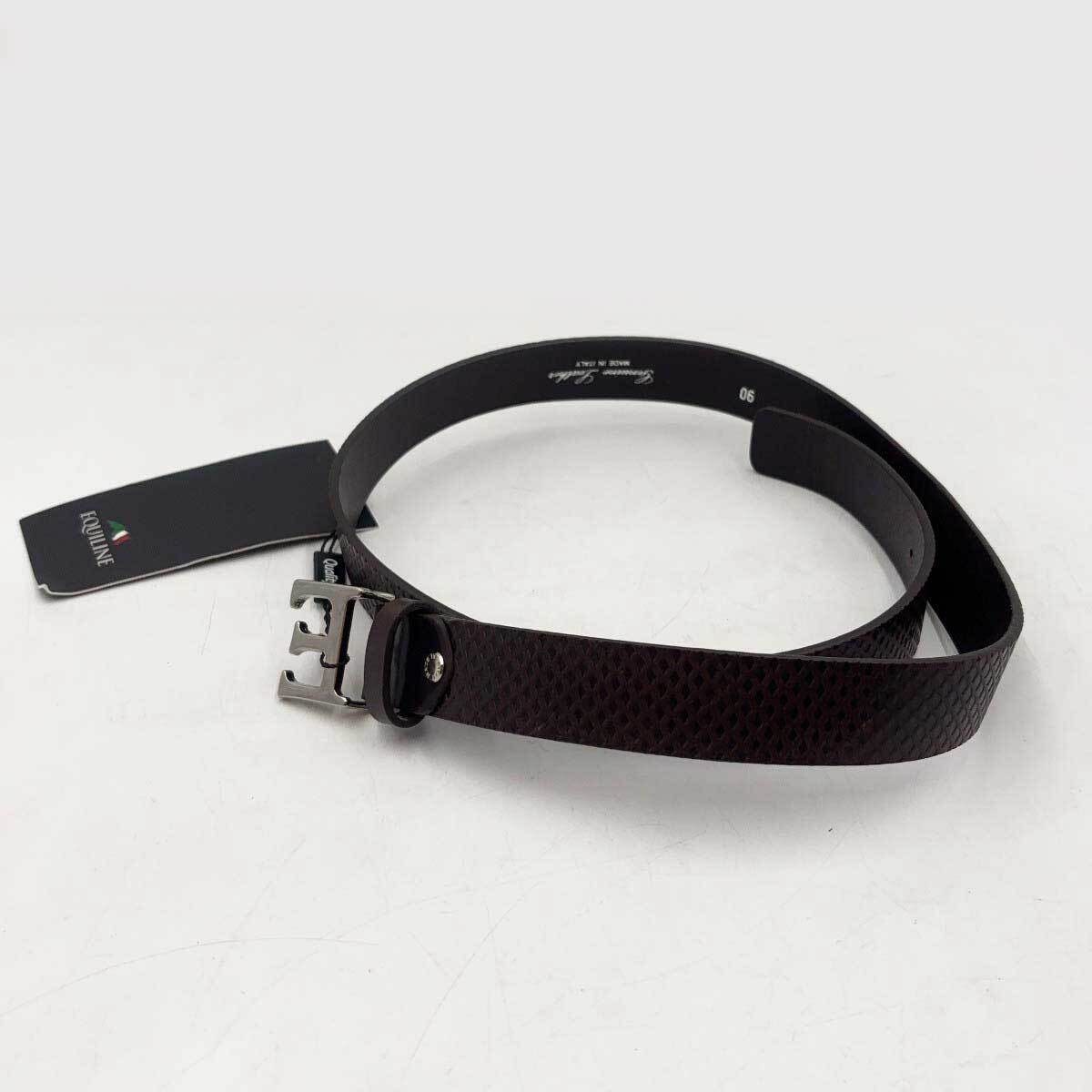 > 【中古・未使用品】EQUILINE エクイライン ELVINE 型押しレザーベルト Eバックル 90 ブラウン レディース 乗馬 馬術
