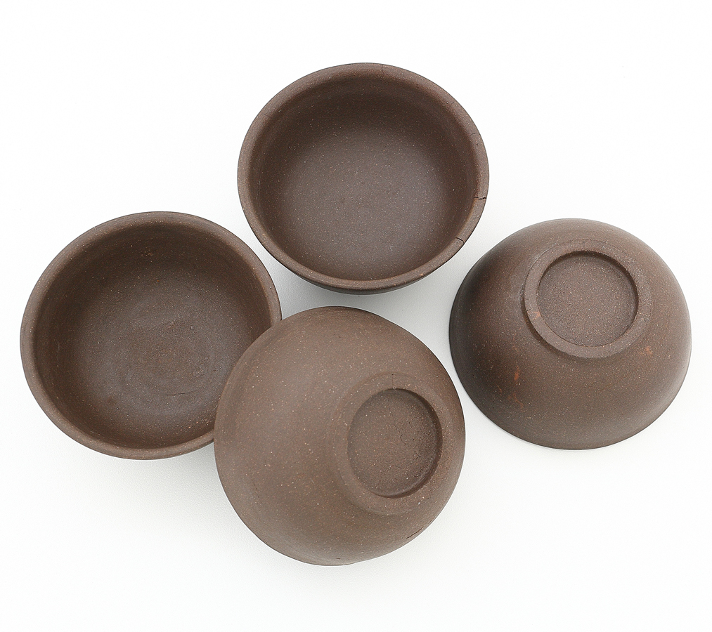- 【梟】中国 宜興 時代 紫泥 茶杯 4客 汲み出し 煎茶茶碗 煎茶碗 煎茶道具 紫砂 朱泥 早期壷 早期壺 中国茶 茶器 ティーカップ 湯呑み 古玩
