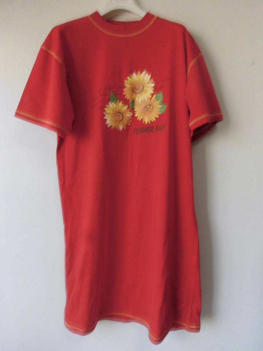 - ●P.K CLUB/ひまわりの花 *赤ロングTシャツワンピース*サイズL相当
