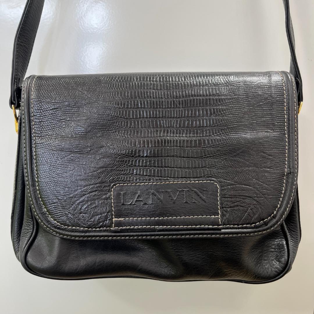 - 【9052】LANVIN ランバン ショルダーバッグ クロコ レザーブラック