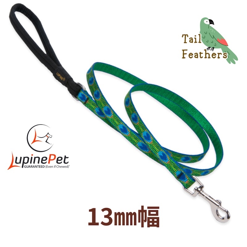 - テールフェザー柄 13mm幅120cmリード パッド付き LUPINE アメリカ製 軽量 丈夫 小型犬向け ルパイン