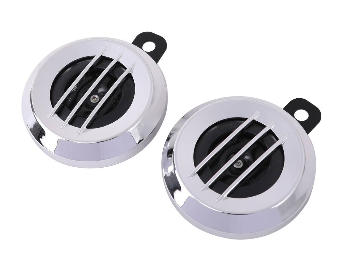 - 12V フィン メッキ ホーン 2個 セット ZRX400 エストレヤ XJR1300 イナズマ インパルス CB750 XJR400 ゼファー CB400SF 等 汎用 社外品
