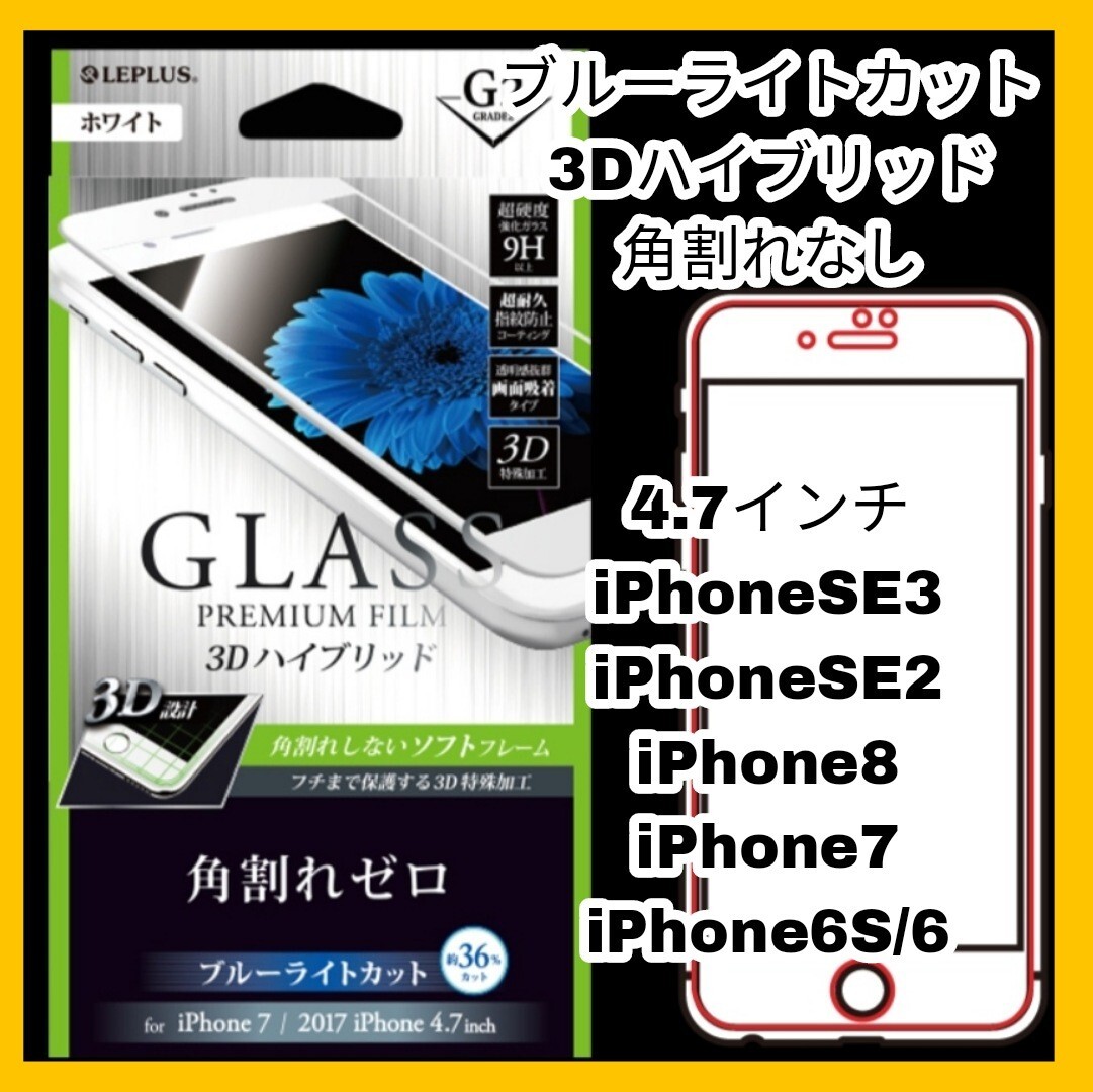 > 送料無料 新品 4.7インチ iPhoneSE iPhone8 iPhone7 iPhone6 iPhone6S フィルム ガラス ブルーライト カット iPhone SE 8 7 6 6S 白 3