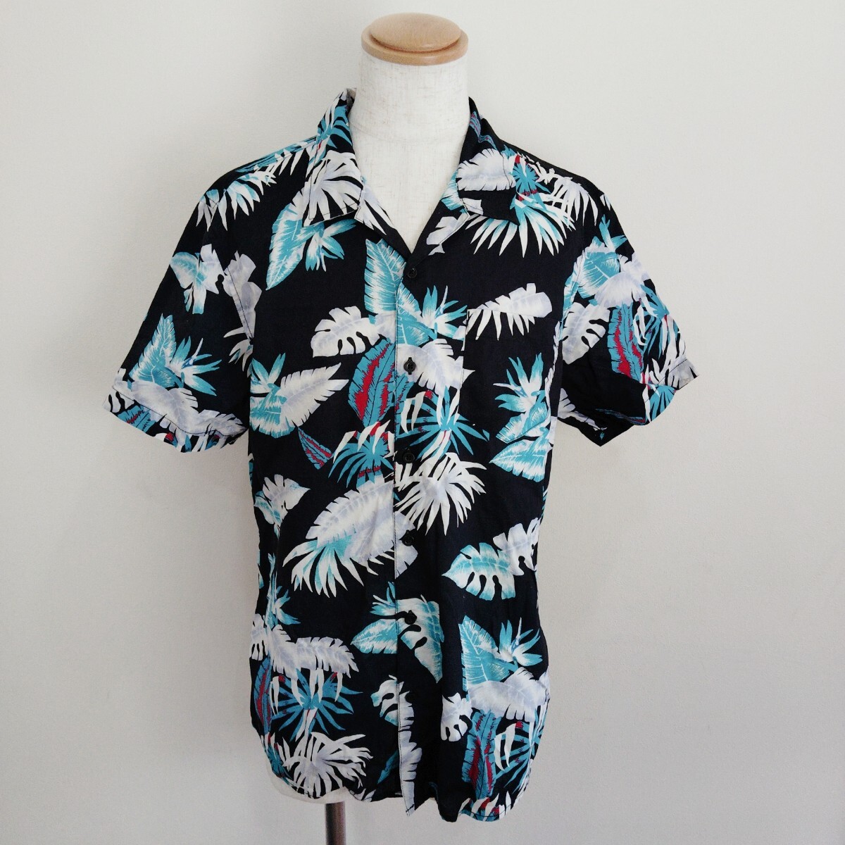 - 0723/L/GUESS メンズ 半袖シャツ アロハシャツ 総柄 黒