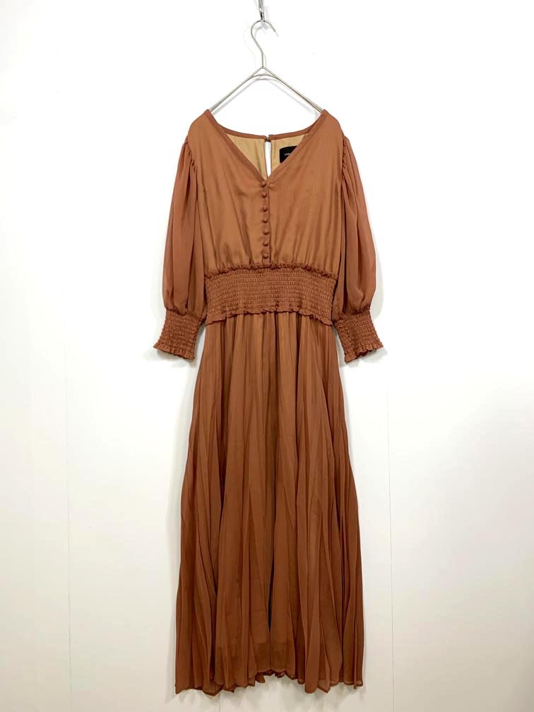 > ゆうパケットOK LAGUNAMOON ラグナムーン 032020302301-01 定価19800円 LADYランダムプリーツフレアー ワンピース sizeS/オレンジ ■■