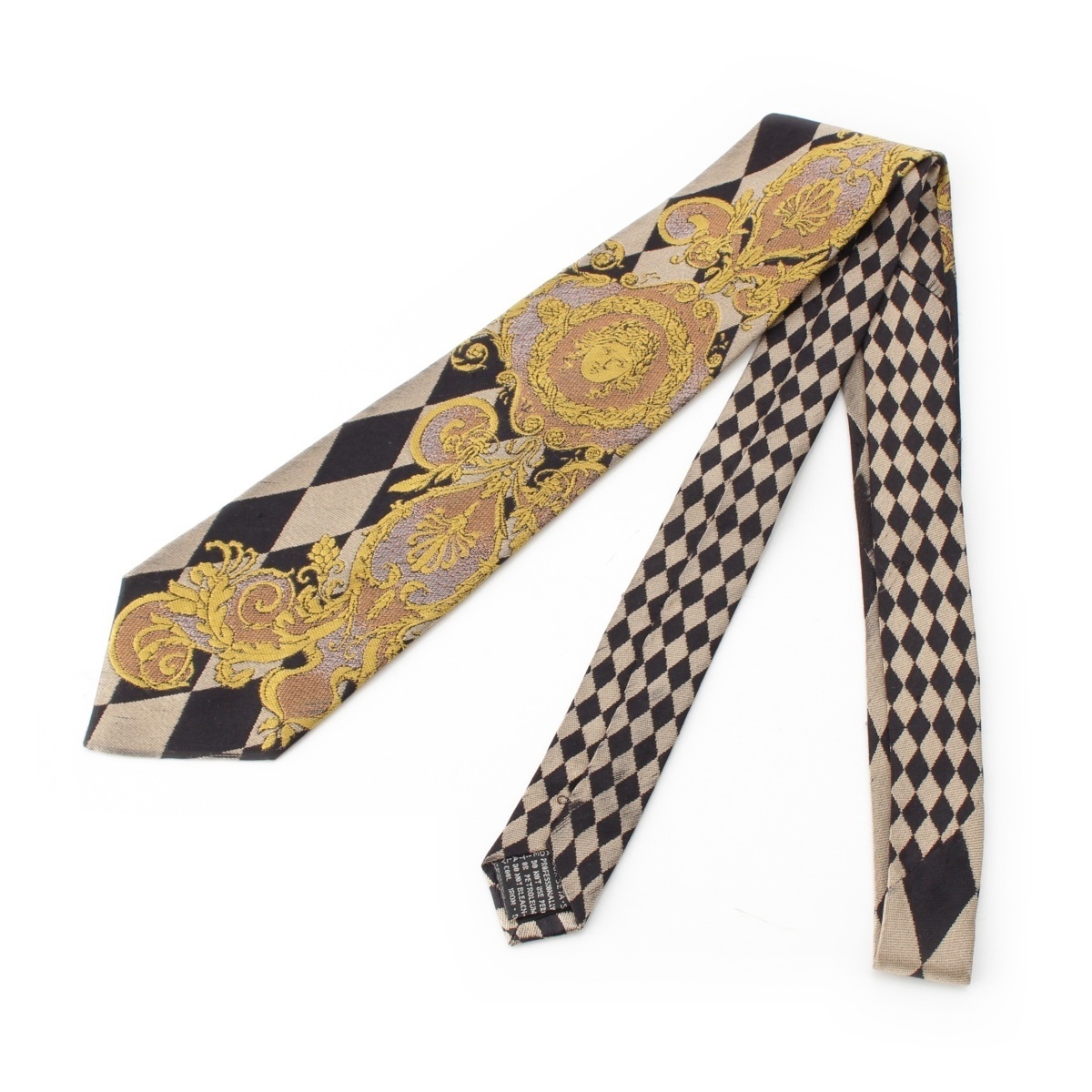 - ジャンニ・ヴェルサーチェ シルク メデューサ ジャガード ネクタイ ブラック ベージュ系【中古】