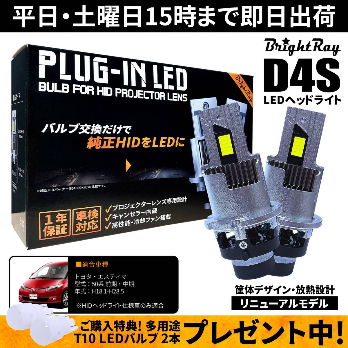 - 1年保証 トヨタ エスティマ 50系 前期 中期 ACR50 ACR55 GSR50 GSR55 (H18.1-H28.5) 純正HID用 BrightRay D4S LEDヘッドライト 車検対応