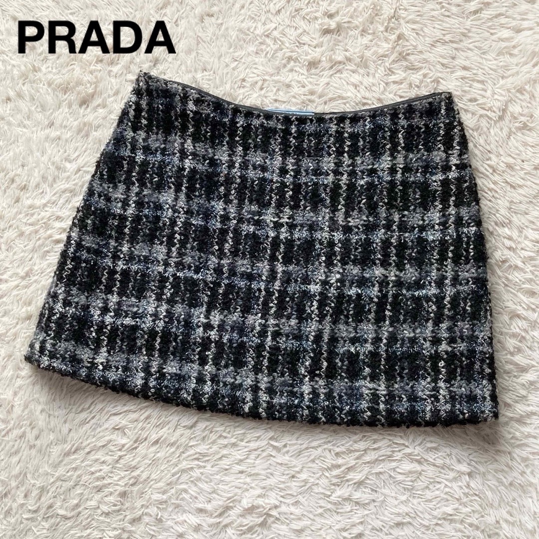- 美品 PRADA プラダ ツイードスカート ミニスカート 台形スカート アルパカ モヘヤ混 ウールツイード 42サイズ ルーマニア製