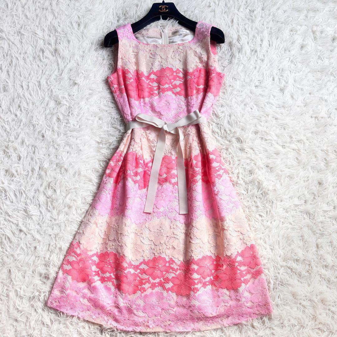> Super Beauty スーパービューティー 総レース ノースリーブロング丈ワンピース 腰リボン 腰ベルト マルチカラー レディース 40