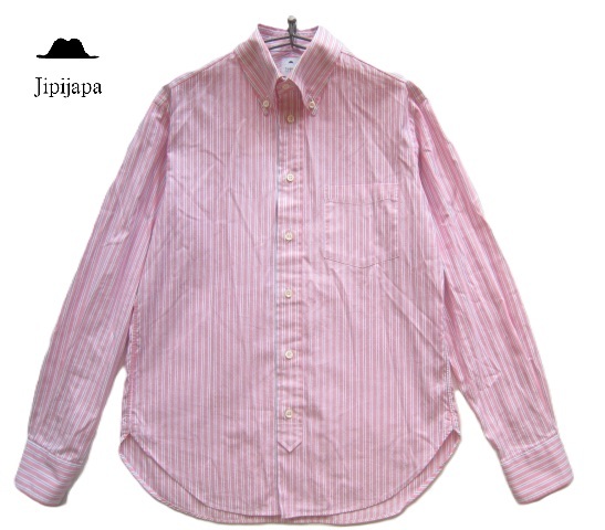 > 美品日本製!!ヒピハパ jipijapa*胸ポケット付き ストライプ柄オックスフォードボタンダウンシャツ 1 実寸S ピンク×白×紺