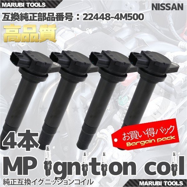 > 【送料無料】イグニッションコイル ニッサン サニー プリメーラカミノ 他 22448-4M500 等 4本 3Pinタイプ-040