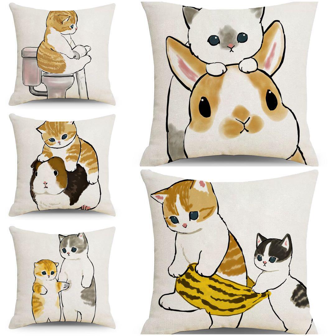 - 5点セット ねこ クッションカバー 座布団カバー 送料無料 新品