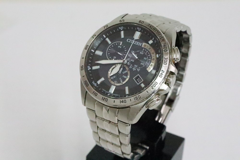 - 【5P1212】1円スタート CITIZEN シチズン Eco-Drive エコドライブ E610-S074321 電波ソーラー 腕時計 不動品 クロノグラフ メンズ ウォッチ