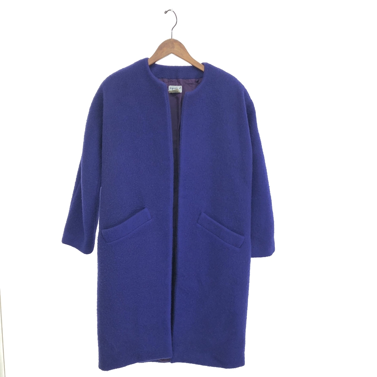 > ◆agnes b. アニエスベー ノーカラー コート サイズ:2◆ ブルー ウール レディース ボタンレス アウター フランス製