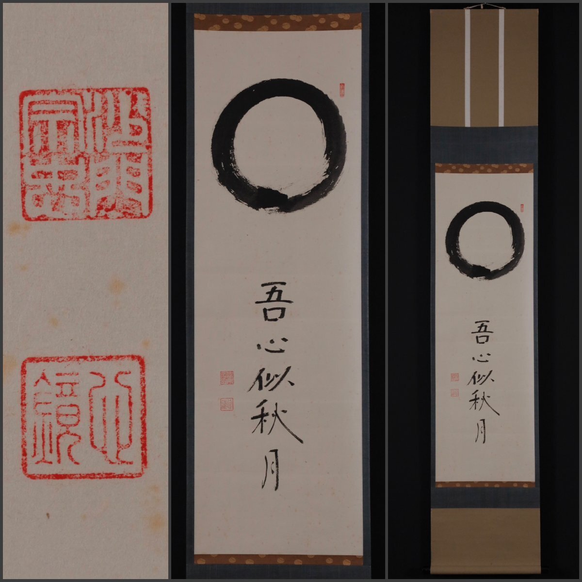 - 【模写】吉】12650 鈴木宗忠 円相「吾心似秋月」 龍沢寺 玄淵 心鏡室 臨済宗 妙心寺 仏教 栃木県 書 禅語 茶掛け 茶道具 掛軸 掛け軸