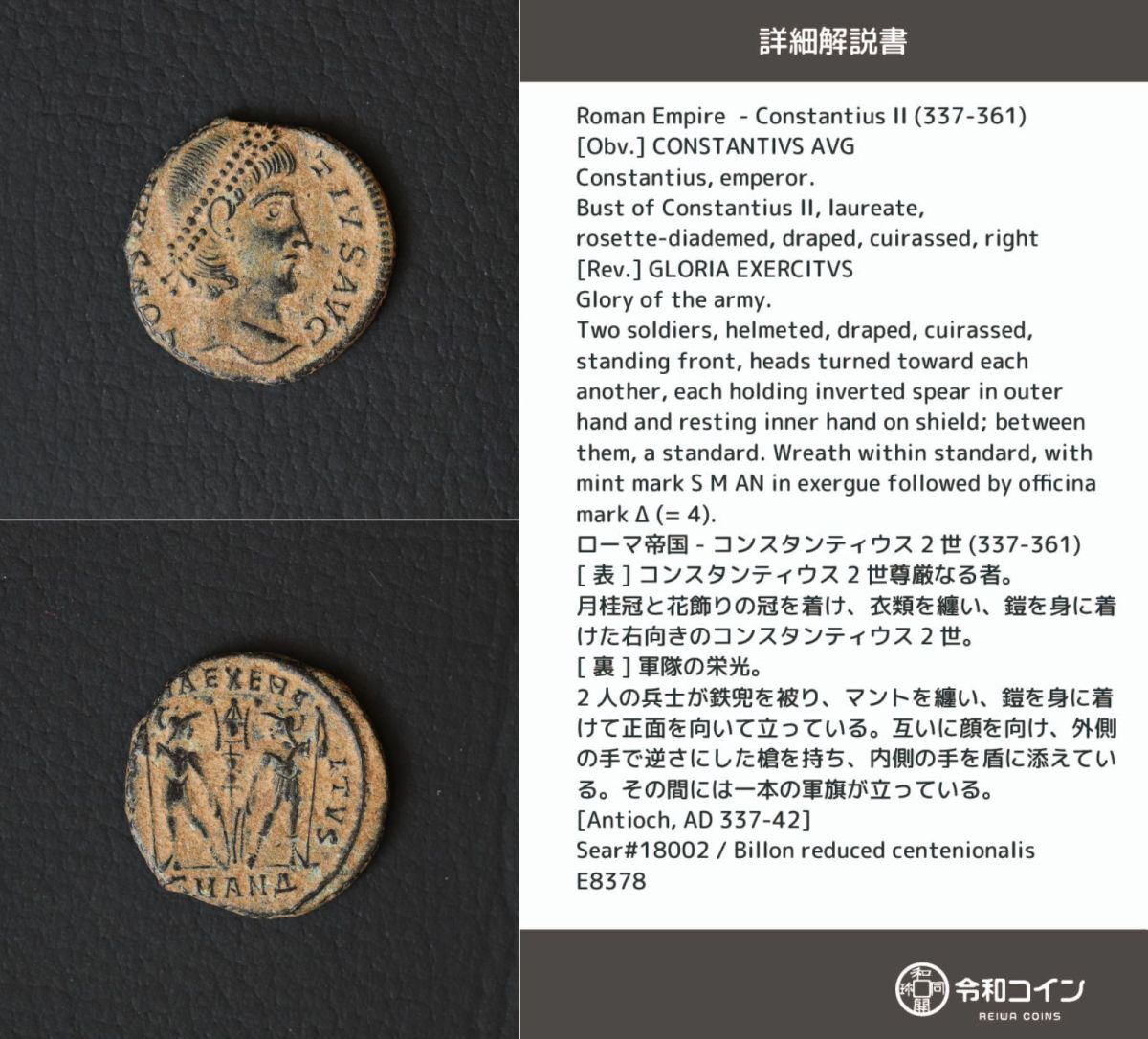 - *[令]コンスタンティウス2世 センテニオナリス・ビロン貨【詳細説明カード付】古代ローマコイン、古代ギリシャ 銀貨[E8378]7o5
