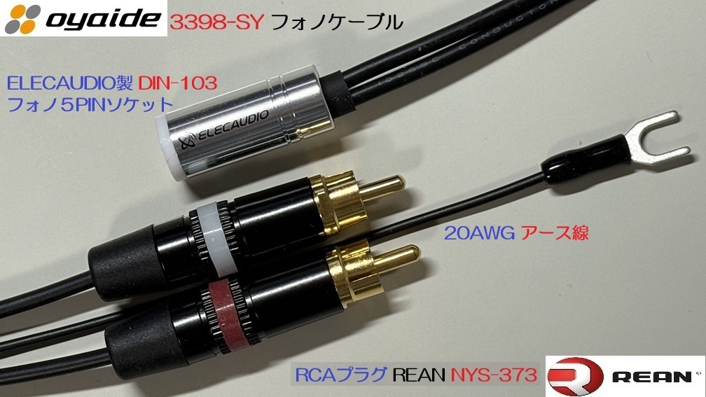 - 24)《1.2m ELECAUDIO製DIN-103フォノ5PINソケット+RCAプラグ オヤイデ フォノケーブル・アース線》 Phono cable / Oyaide 3398-SY