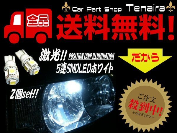 - 12V T10 LED バルブ 白 5SMD 2個 セット ウェッジ球 ホワイト ポジション スモール ナンバー灯 ルーム球 メール便送料無料/6