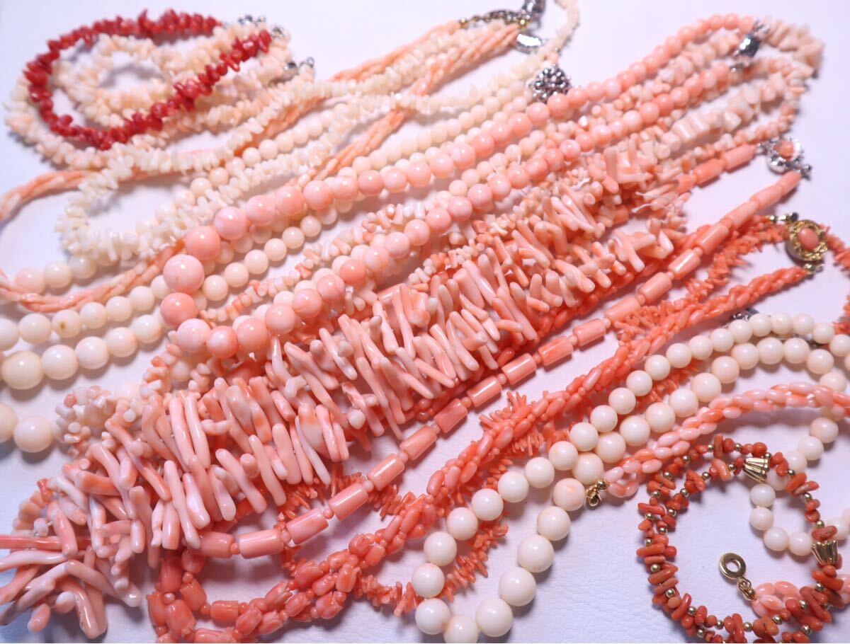 - 大量/珊瑚アクセサリー/ネックレス/セット/まとめて/天然石/本珊瑚/赤珊瑚/桃/おまとめ/メッキ/シルバー/SILVER/豪華