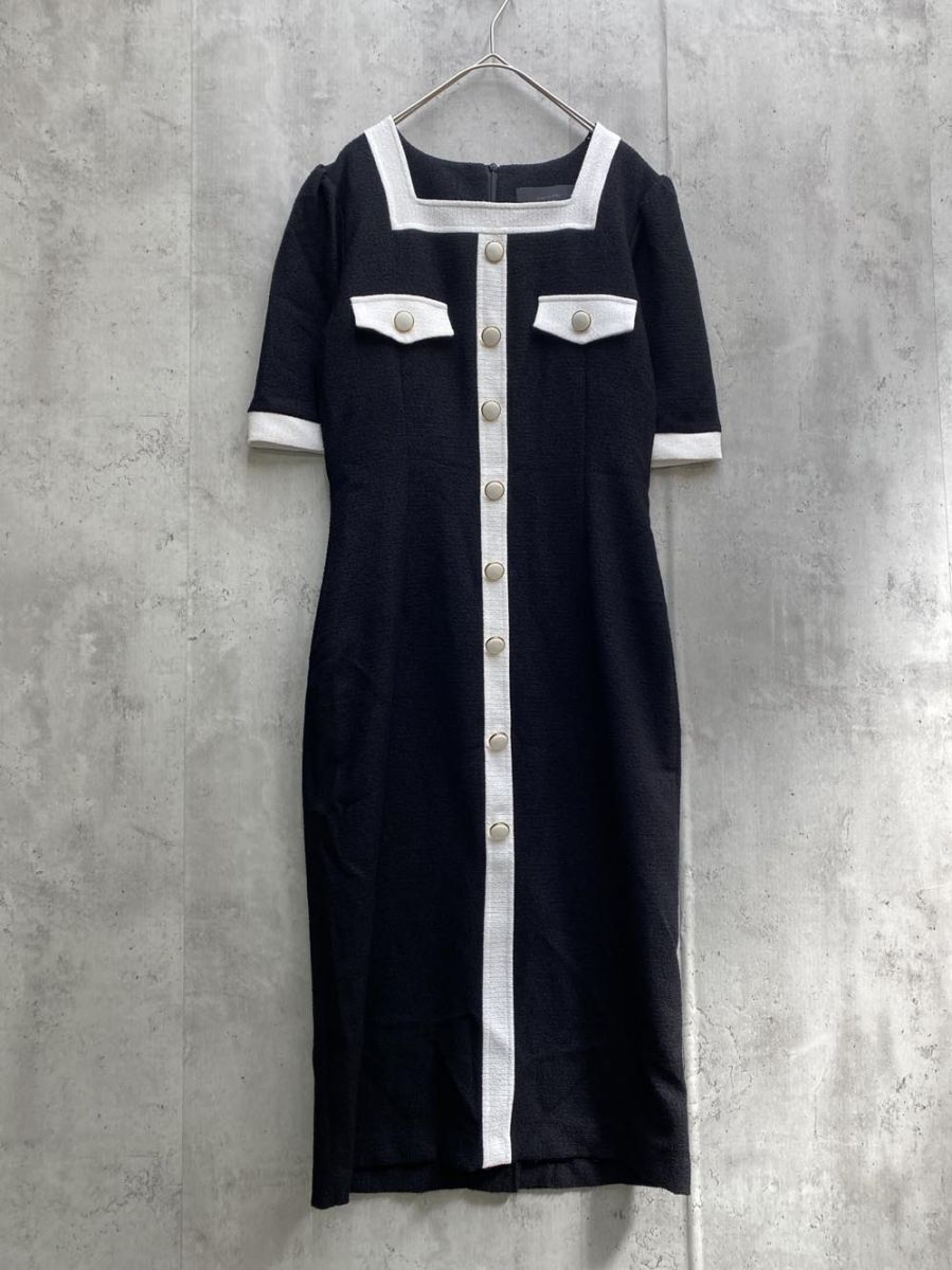 > HONEYCOMB ハニカム 半袖 Iライン スクエアネック ロング ワンピース 韓国ファッションブランド 黒 ■◆◎