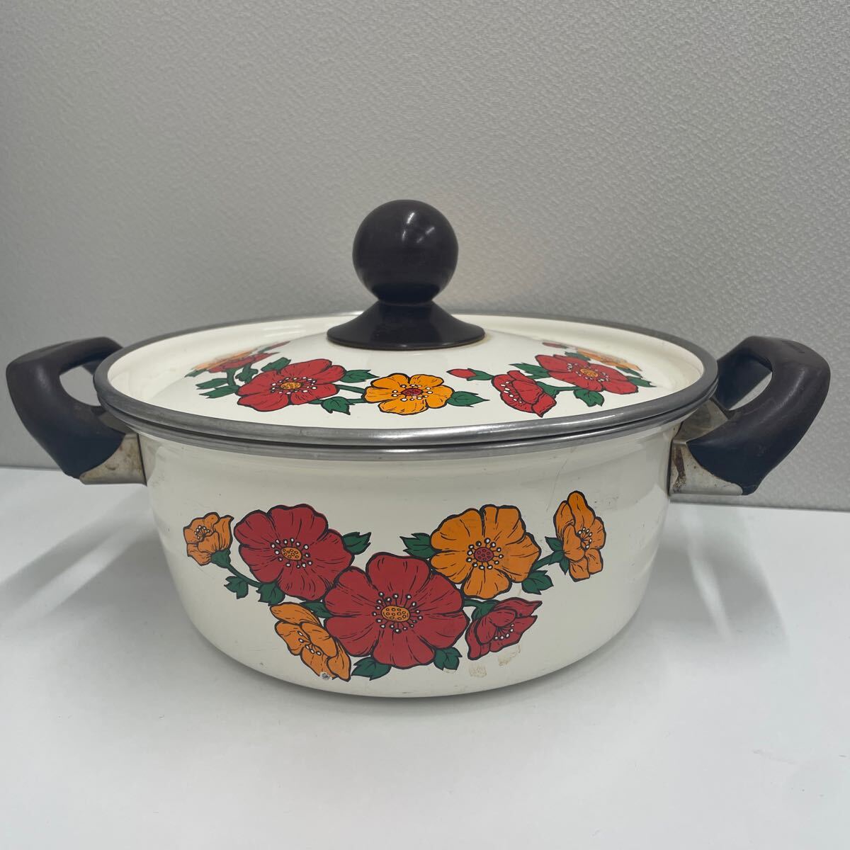 - refle0 【現状品】 昭和レトロ ホーロー鍋 花柄 両手鍋 調理器具 ホーロー 鍋 レトロ MARUBISHI