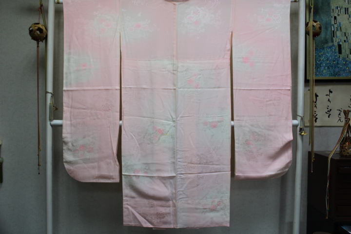 - きもの今昔8810 振り袖用長襦袢 広衿袖無双身頃単衣 羽二重居敷当付き仕立 正絹高級綸子地 身丈136袖丈108cm