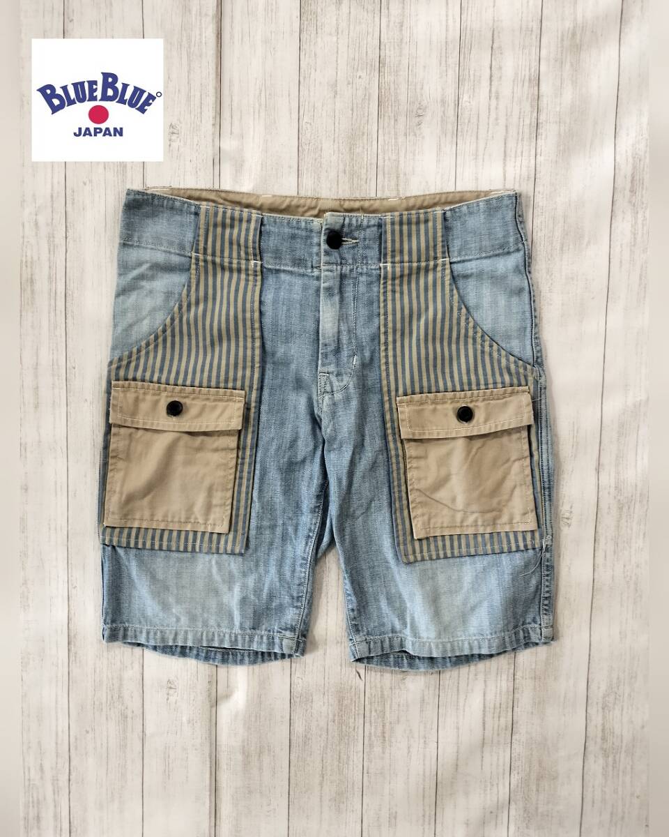 > BLUE BLUE/ブルーブルー/ハリラン/聖林公司/デニムブッシュショーツ/ショートパンツ/ヒッコリーストライプ×ツイル生地ポケット切り替え