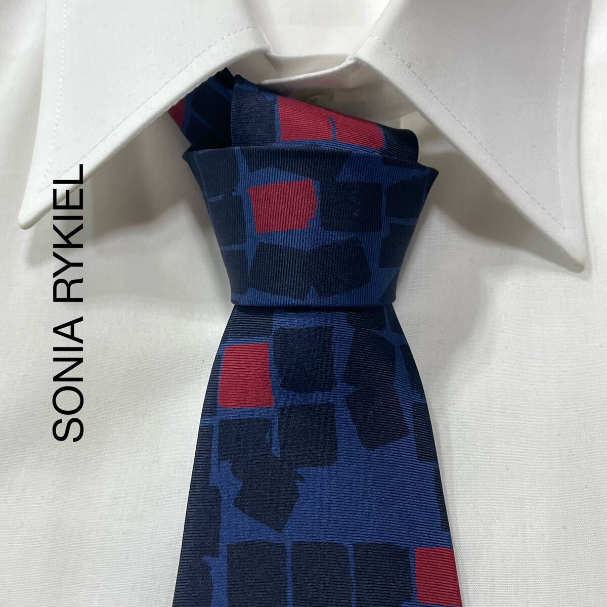 - SONIA RYKIEL ソニアキリエル パターン柄 シルク ネクタイ 日本製 ネイビー ブラック ワイン TG2690