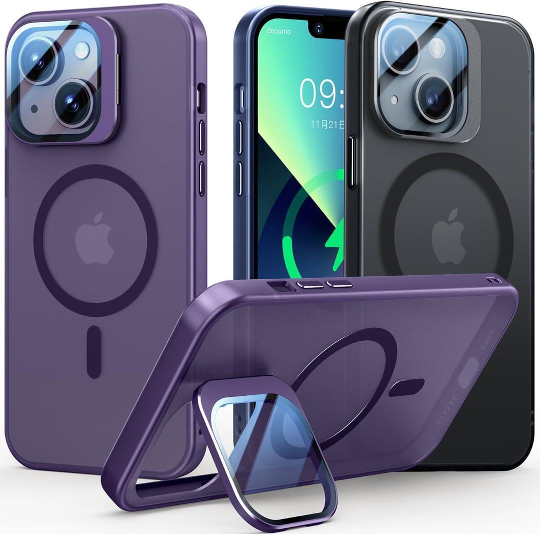 > WTAIYUN【レンズ保護+スタンド一体】iPhone 13 14用 ケース MagSafe 対応 米軍規格 スマホケース マット半透明 (ディープパープル)