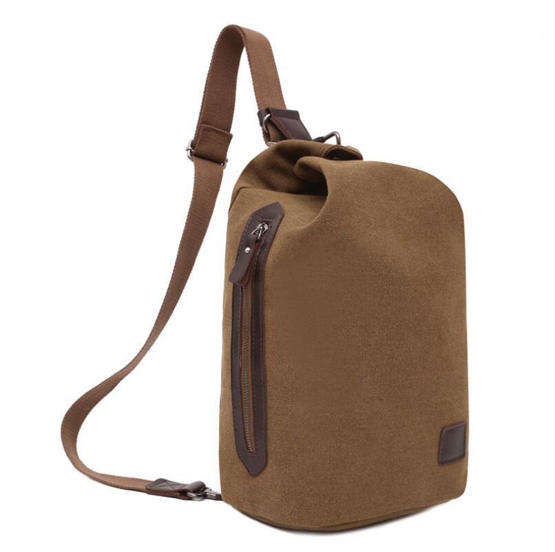 - ボディーバッグ 大容量 キャンバス 多機能 ワンショルダーバッグ 斜めがけ 帆布 カジュアル 旅行 アウトドア 茶色
