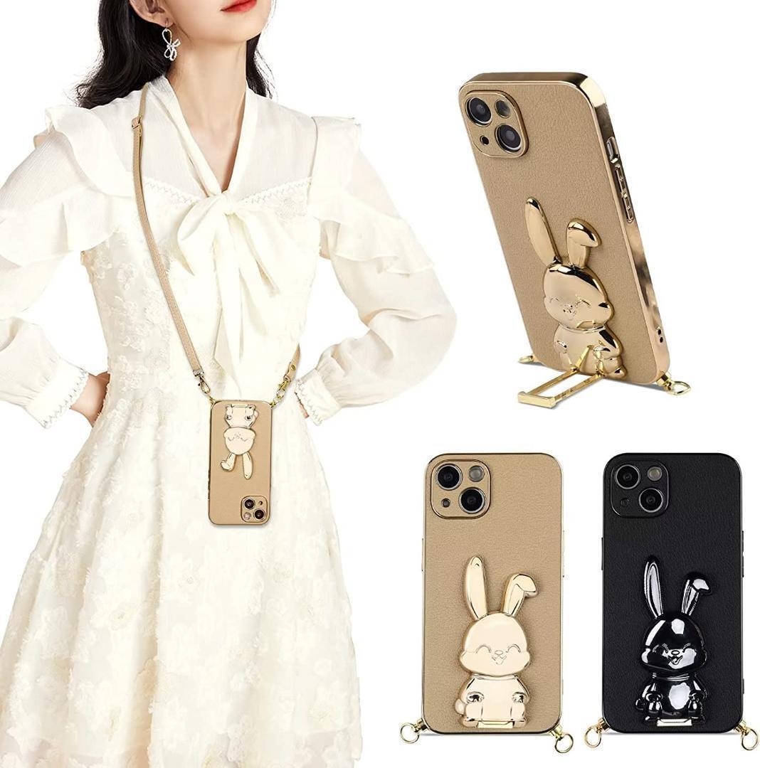 - iPhone14 PR0 ケースカバー 立体ウサギ 人気 カーキ