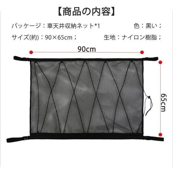 - ルーフネット カーゴネット 車 ファスナー付き 2層 収納 強度アップのロープ入り 2重構造 カー用品 天井 ハンモック ラゲッジネット