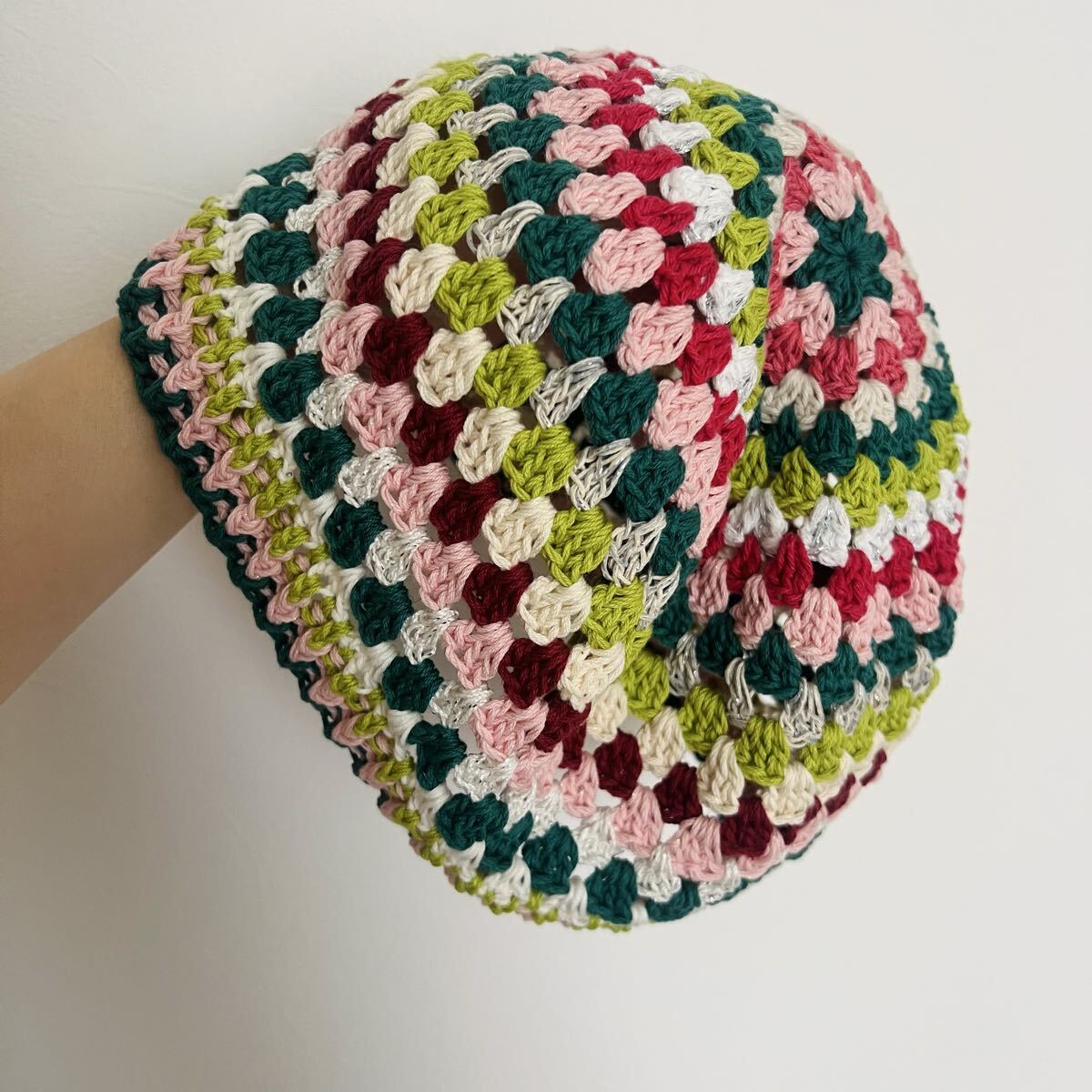 - ハンドメイド 手編み クロシェ編み ニット帽 帽子 ⑤ビーニー マルチ カラフル