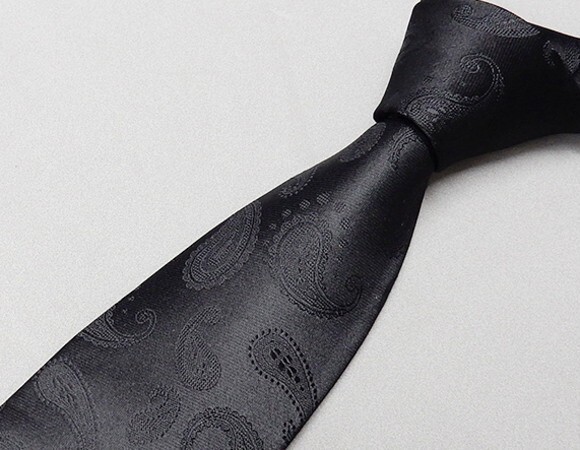 - 西陣織 フォーマルネクタイ◇黒◇ペイズリー◆シルク100%◇日本製◆礼装◆告別式・葬式 メール便可 NJ46-BK