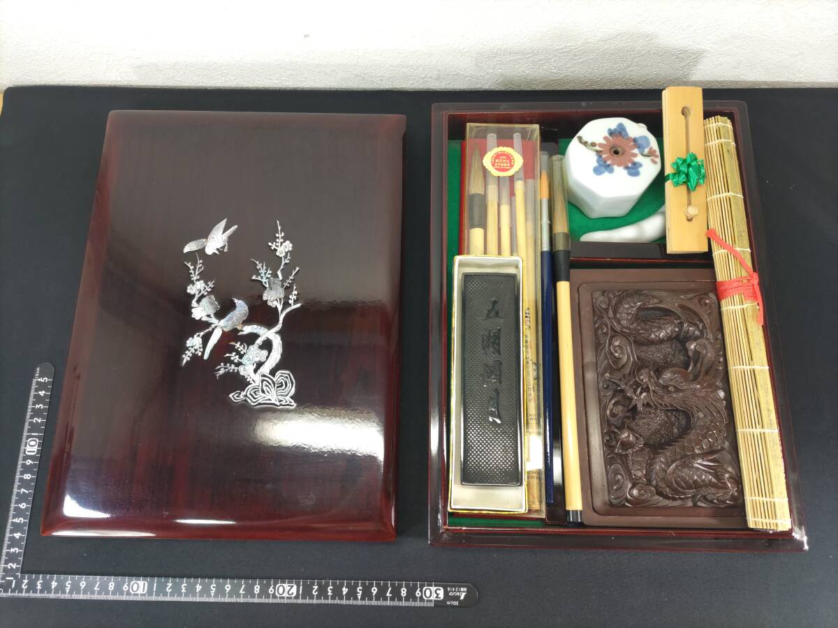 - ■送料無料!■螺鈿細工・書道具セット・H7.5×W32×D23.5cm■硯箱■習字道具!