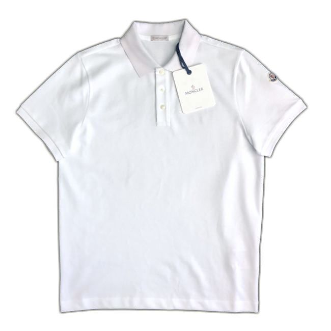 > 【6.7万新品】MONCLER モンクレール ポロシャツ 襟裏トリコロール ロゴワッペン ホワイト Sサイズ 本物 SALE