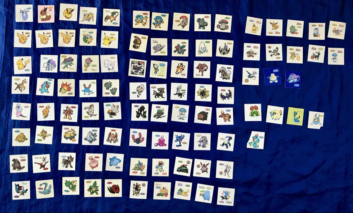 - 【封入時期バラバラ】第一パン ポケモンパン おまけ 貼って剥がせるデコキャラシール 98枚セット 2000~2025 中古 当時物