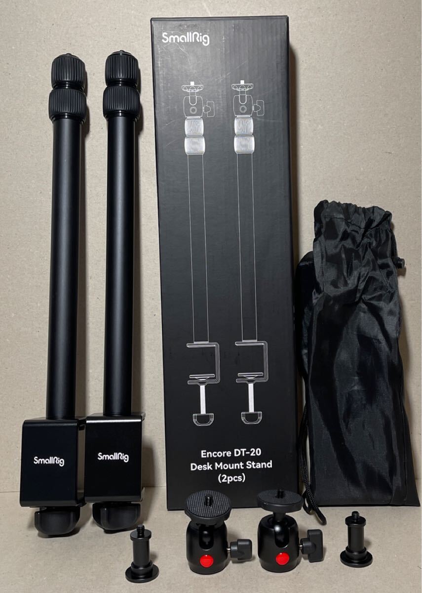 > SmallRig Encore DT-20 19-39インチ カメラデスクマウント 2個 スタンド ボールヘッド付き 動画撮影 リモート会議 ライトスタンド 卓上
