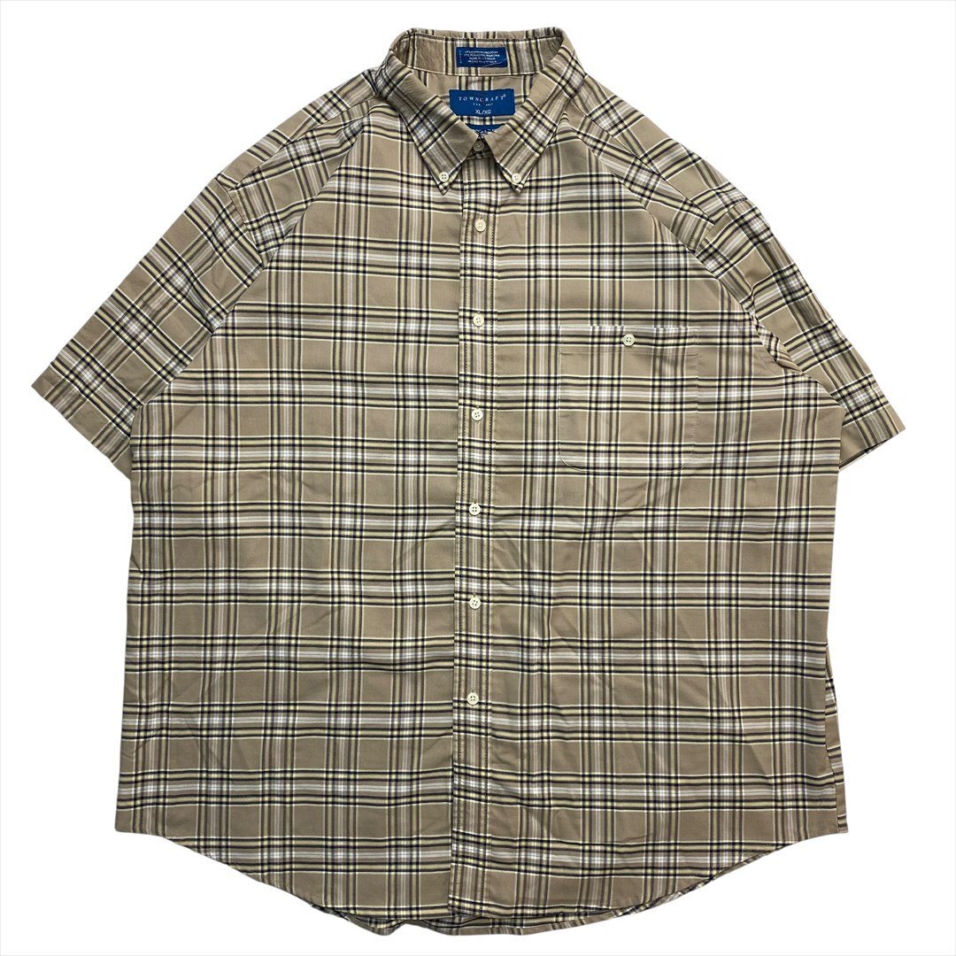 > Vintage TOWNCRAFT タウンクラフト ボタンダウン チェック柄 シャツ 半袖 メンズ XL ベージュ 古着 BD ヴィンテージ ビンテージ